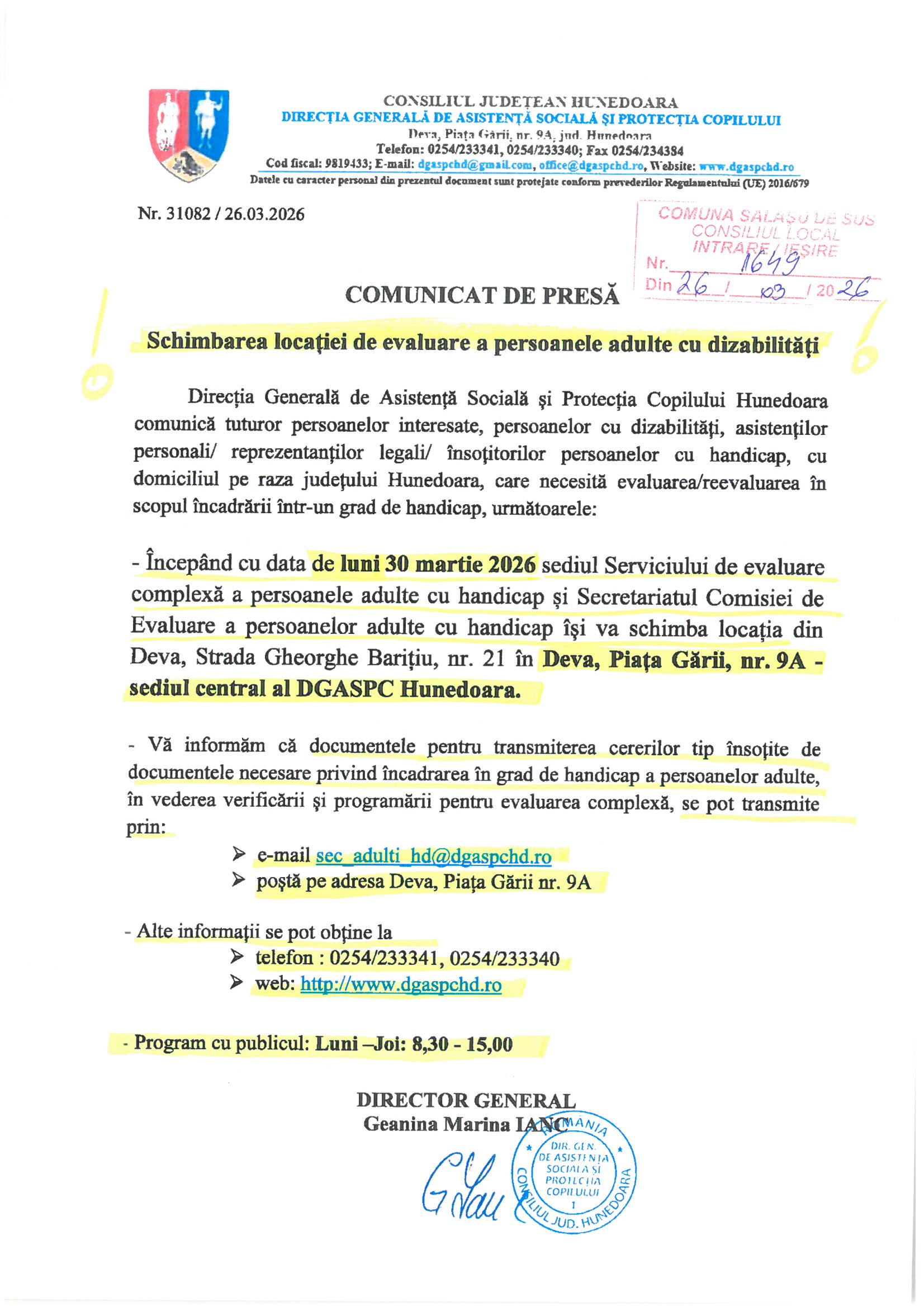 Schimbare locatie de evaluare  a persoanelor adulte cu handicap!